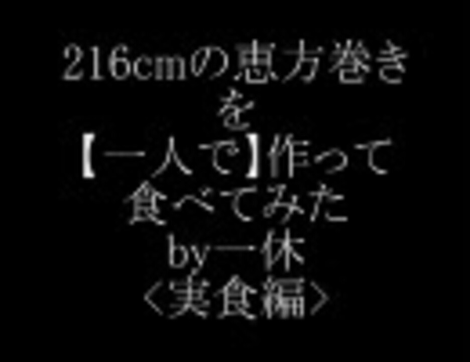 一休でございます。『見る側からヤる側へ』をモットーに活動します。<br />節分から3日が経過していますが、ようやくうpできる状態になったので上げました。<br /><br />2010年版恵方巻き【作成編】→<a href="https://www.nicovideo.jp/watch/sm9596205" class="watch">sm9596205</a><br />2011年版恵方巻き→<a href="https://www.nicovideo.jp/watch/sm13496887" class="watch">sm13496887</a><br />2012年版恵方巻き→<a href="https://www.nicovideo.jp/watch/sm16957726" class="watch">sm16957726</a>最新作<br /><br />でかいおいなりさん編→<a href="https://www.nicovideo.jp/watch/sm9679341" class="watch">sm9679341</a>
