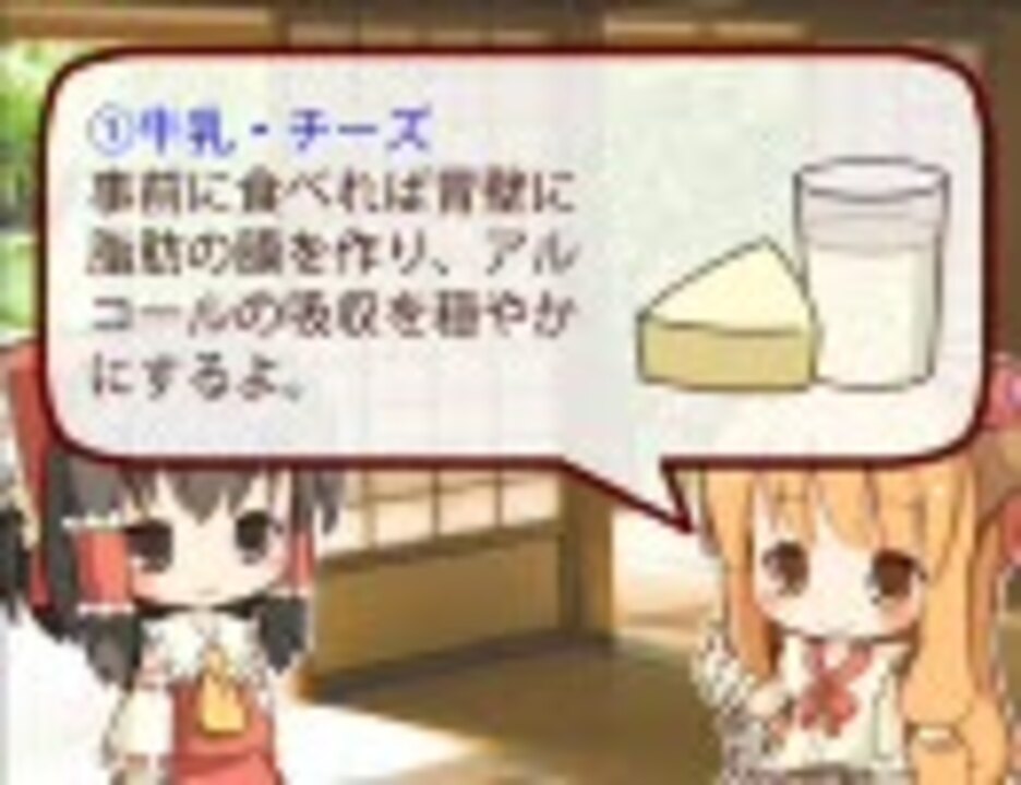 「酔いにくくなる」と言われる方法をまとめてみました。<br />気休め程度に考えてくださいm(_ _;)m マイリスト→<a href="https://www.nicovideo.jp/mylist/5434783" target="_blank" rel="noopener">mylist/5434783</a><br />2/18 宣伝、カテゴリ1位本当にありがとうございます!<br /><br /><font color=#ff0000>*エコノミーモードの時間帯だと、動画の途中から見れなくなる現象が発生します。<br /><b>その場合時間を置くか、こちらをどうぞ→</b><a href="https://www.nicovideo.jp/watch/sm9724266" class="watch">sm9724266</a>(内容に変化はありません)</font><br /><br />素材は以下よりお借りしました。<br />■BGM<br /><a href="https://www.nicovideo.jp/watch/sm8264324" class="watch">sm8264324</a>・<a href="https://www.nicovideo.jp/watch/sm1550721" class="watch">sm1550721</a>・<a href="https://www.nicovideo.jp/watch/sm2600278" class="watch">sm2600278</a><br />(勝手にお借りしてすいません・・・)<br />■SE・背景写真<br />Senses Circuit <a href="http://www.senses-circuit.com" target="_blank" rel="noopener nofollow">http://www.senses-circuit.com</a><br />フリー素材 -SpiderWorks- <a href="http://www.spiderworks.jp/sozai" target="_blank" rel="noopener nofollow">http://www.spiderworks.jp/sozai</a><br />01SoundEarth <a href="http://www.01earth.net/sound" target="_blank" rel="noopener nofollow">http://www.01earth.net/sound</a><br />他、フリー素材サイト様<br />(イラストは自作です)