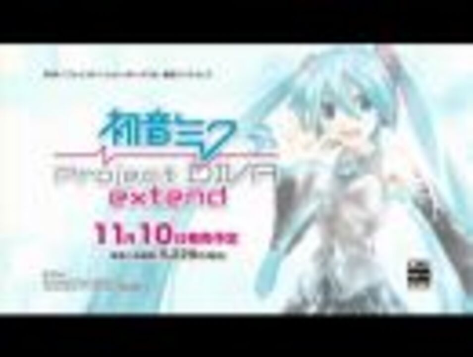 みなさんこんにちは!<br>2011年11月10日発売予定の「Project DIVA」シリーズ最新作、<br>「初音ミク -Project DIVA- extend」のCMを公開しちゃいます!<br><br>ナレーションはもちろん藤田咲さん!!<br>そして、BGMは本作オープニングテーマでもある<br>ryoさん作曲、Dixie Flatlineさん作詞の「積乱雲グラフィティ」です!<br>(「初音ミク -Project DIVA- extend」公式HPにてShort Ver.が聴けます!)<br><br>TVで流れたけど不意打ちでじっくり見れなかった~なんて方も、<br>繰り返しじっくり見ちゃってください!<br><br>「初音ミク -Project DIVA- extend」、只今絶賛予約受付中です!<br>ミク千万人の初音ミクファンの皆様、おーまたせいたしましたっ!<br>(みどりん@3号見習い)<br><br>------------------------<br>★「初音ミク -Project DIVA- extend」<br> 発売日: 2011年11月10日<br> 価格: 5,229円(税込)<br> 対応機種: PSP(R)<br> ジャンル: リズムアクション<br> プレイ人数: 1人<br><br><br>初音ミク-Project DIVA-公式サイト → <a href="http://miku.sega.jp/" target="_blank" rel="noopener nofollow">http://miku.sega.jp/</a><br>週刊ディーヴァ・ステーション → <a href="http://miku.sega.jp/info/" target="_blank" rel="noopener nofollow">http://miku.sega.jp/info/</a><br>初音ミク -Project DIVA- 公式twitterアカウント → <a href="http://twitter.com/pjd_sega/" target="_blank" rel="noopener nofollow">http://twitter.com/pjd_sega/</a><br><br>(C)SEGA<br>(C)Crypton Future Media, Inc.<br>VOCALOIDはヤマハ株式会社の登録商標です。<br>