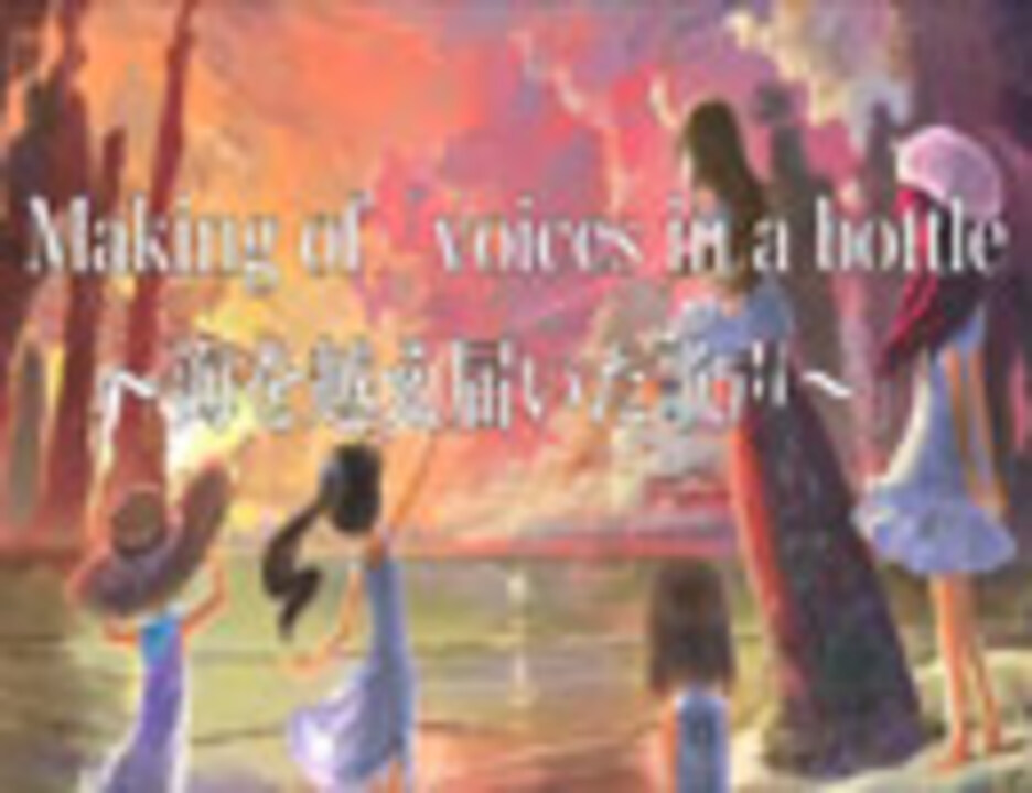 2011.11.23発売アルバム<font color="#FF0000"><b>「voices in a bottle~海を越えて届いた歌声~」のレコーディング時映像</b></font>です。<br><br>後編は<a href="http://www.nicovideo.jp/watch/1320829949" target="_blank">コチラ</a><br><a href="http://www.nicovideo.jp/watch/sm16123873" target="_blank">クロスフェード</a><br><br><b>【収録楽曲】</b><br>01 Lollipop Factory (OSTER project 書き下ろし新曲) / 全員<br>02 <a href="http://www.nicovideo.jp/watch/sm15640073" target="_blank">ネトゲ廃人シュプレヒコール(Acoustic Jazz Trioアレンジ)/のぶなが</a><br>03 <a href="http://www.nicovideo.jp/watch/sm15912977" target="_blank">遠い空(におP書き下ろし新曲)/栗プリン&わたあめ</a><br>04 <a href="http://www.nicovideo.jp/watch/sm15640282" target="_blank">glow(Piano&Strings Acousticアレンジ)/ グリリ</a><br>05 文学少年の憂鬱(Acoustic Jazz Trioアレンジ)/栗プリン<br>06 <a href="http://www.nicovideo.jp/watch/sm15993613" target="_blank">DIAMOND(Junky書き下ろし新曲)/のぶなが&グリリ</a><br>07 <a href="http://www.nicovideo.jp/watch/sm15838621" target="_blank">パズル(Piano&Strings Acousticアレンジ)/ENE</a><br>08 ミミック(Acoustic Jazz Trioアレンジ)/わたあめ<br>09 Yes,(T-POCKET書き下ろし新曲)/のぶなが&ENE<br>10 トリノコシティ(40_P)/ENE(ボーカル新録)<font color="#FFA500"><b>※ボーナス・トラック</b></font><br>11 深海少女(ユウユP)/のぶなが(ボーカル新録)<font color="#FFA500"><b>※ボーナス・トラック</b></font><br>12 Lollipop Factoryハングルver(OSTER project 書き下ろし新曲) / 全員<br><br>