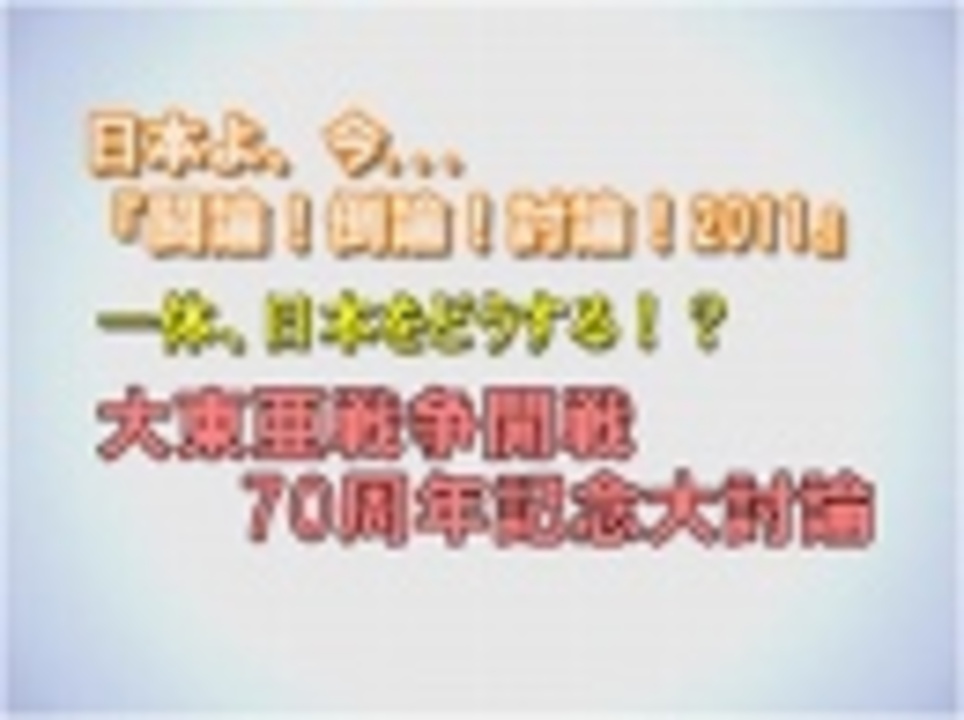 ◆一体、日本をどうする!?大東亜戦争開戦70周年記念大討論<br><br>パネリスト:<br> 荒谷卓(元陸上自衛隊特殊作戦群初代群長)<br> 上島嘉郎(別冊「正論」編集長)<br> 田久保忠衛(杏林大学名誉教授)<br> 西尾幹二(評論家)<br> 西部邁(評論家)<br> 藤井聡(京都大学大学院教授)<br> 宮脇淳子(東洋史家・学術博士)<br>司会:水島総<br><br> ①<a href="https://www.nicovideo.jp/watch/1323426247" class="watch">watch/1323426247</a><br> ②<a href="https://www.nicovideo.jp/watch/1323425857" class="watch">watch/1323425857</a><br> ③<a href="https://www.nicovideo.jp/watch/1323425524" class="watch">watch/1323425524</a><br><br>※チャンネル桜では、自由且つ独立不羈の放送を守るため、『日本文化チャンネル桜二千人委員会』の会員を募集しております。以下のページでご案内申し上げておりますので、全国草莽の皆様のご理解、ご協力を、何卒宜しくお願い申し上げます。<br><a href="http://www.ch-sakura.jp/topix/538.html" target="_blank" rel="noopener nofollow">http://www.ch-sakura.jp/topix/538.html</a><br><br>◆チャンネル桜公式HP<br><a href="http://www.ch-sakura.jp/" target="_blank" rel="noopener nofollow">http://www.ch-sakura.jp/</a>