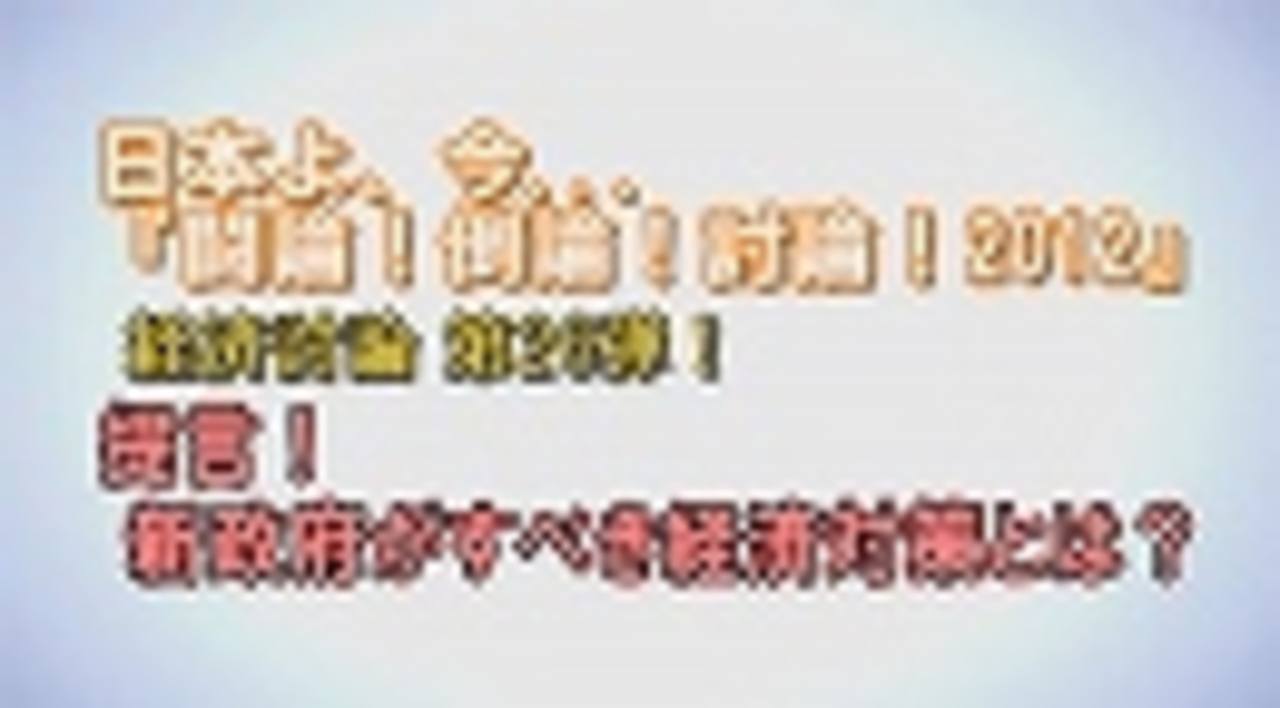◆経済討論第26弾!提言!新政府がすべき経済対策とは?<br><br>パネリスト:<br> 飯田泰之(駒澤大学准教授・エコノミスト)<br> 上村シーラ千賀子(シスコシステムズ上級管理職・早稲田大学講師・秋田大学講師)<br> 片岡剛士(三菱UFJリサーチ&コンサルティング株式会社 経済・社会政策部 主任研究員)<br> 上念司(経済評論家)<br> 田中秀臣(上武大学教授)<br> 田村秀男(産経新聞社特別記者・編集委員兼論説委員)<br> 野口旭(専修大学教授)<br>司会:水島総<br><br> ①<a href="https://www.nicovideo.jp/watch/1355453975" class="watch">watch/1355453975</a><br> ②<a href="https://www.nicovideo.jp/watch/1355453943" class="watch">watch/1355453943</a><br> ③<a href="https://www.nicovideo.jp/watch/1355454374" class="watch">watch/1355454374</a><br><br>※チャンネル桜では、自由且つ独立不羈の放送を守るため、『日本文化チャンネル桜二千人委員会』の会員を募集しております。以下のページでご案内申し上げておりますので、全国草莽の皆様のご理解、ご協力を、何卒宜しくお願い申し上げます。<br><a href="http://www.ch-sakura.jp/579.html" target="_blank" rel="noopener nofollow">http://www.ch-sakura.jp/579.html</a><br><br>◆チャンネル桜公式HP<br><a href="http://www.ch-sakura.jp/" target="_blank" rel="noopener nofollow">http://www.ch-sakura.jp/</a>