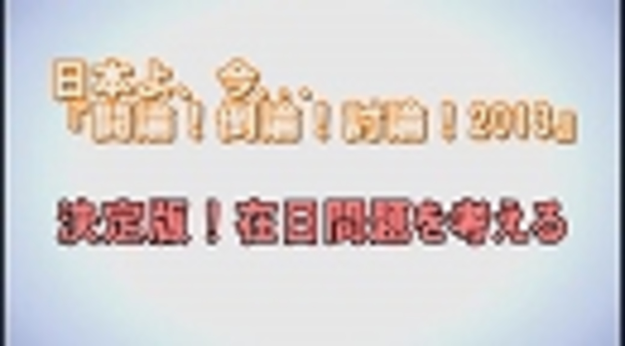 ◆決定版!在日問題を考える<br><br>パネリスト:<br> 上島嘉郎(産経新聞社・別冊「正論」編集長)<br> 金展克(弁理士・「対レイシスト行動集団」C.R.A.C.)<br> 髙英起(デイリーNK東京支局長)<br> 野間易通(編集者・「対レイシスト行動集団」C.R.A.C.)<br> 古谷経衝(評論家・著述家)<br> 三浦小太郎(評論家・北朝鮮帰国者の生命と人権を守る会 副代表)<br> 村田春樹(自治基本条例に反対する市民の会代表・外国人参政権に反対する会東京代表)<br> 李信恵(ライター)<br>司会:水島総<br><br> ①<a href="https://www.nicovideo.jp/watch/1384526227" class="watch">watch/1384526227</a><br> ②<a href="https://www.nicovideo.jp/watch/1384527401" class="watch">watch/1384527401</a><br> ③<a href="https://www.nicovideo.jp/watch/1384526035" class="watch">watch/1384526035</a><br><br>※チャンネル桜では、自由且つ独立不羈の放送を守るため、『日本文化チャンネル桜二千人委員会』の会員を募集しております。以下のページでご案内申し上げておりますので、全国草莽の皆様のご理解、ご協力を、何卒宜しくお願い申し上げます。<br><a href="http://www.ch-sakura.jp/579.html" target="_blank" rel="noopener nofollow">http://www.ch-sakura.jp/579.html</a><br><br>◆チャンネル桜公式HP<br><a href="http://www.ch-sakura.jp/" target="_blank" rel="noopener nofollow">http://www.ch-sakura.jp/</a>