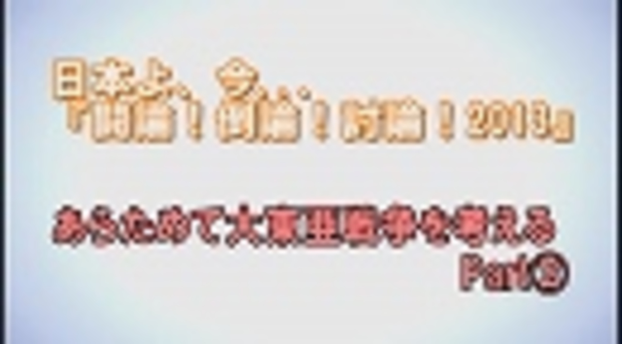 ◆あらためて大東亜戦争を考えるPart2<br><br>パネリスト:<br> 桜井裕子(ジャーナリスト)<br> 佐藤健志(評論家)<br> 富岡幸一郎(文芸評論家・関東学院大学教授)<br> ペマ・ギャルポ(桐蔭横浜大学教授)<br> 三浦小太郎(評論家)<br> 水間政憲(ジャーナリスト)<br> 渡邊哲也(作家・経済評論家)<br>司会:水島総<br><br> ①<a href="https://www.nicovideo.jp/watch/1386302690" class="watch">watch/1386302690</a><br> ②<a href="https://www.nicovideo.jp/watch/1386302645" class="watch">watch/1386302645</a><br> ③<a href="https://www.nicovideo.jp/watch/1386302615" class="watch">watch/1386302615</a><br><br>※チャンネル桜では、自由且つ独立不羈の放送を守るため、『日本文化チャンネル桜二千人委員会』の会員を募集しております。以下のページでご案内申し上げておりますので、全国草莽の皆様のご理解、ご協力を、何卒宜しくお願い申し上げます。<br><a href="http://www.ch-sakura.jp/579.html" target="_blank" rel="noopener nofollow">http://www.ch-sakura.jp/579.html</a><br><br>◆チャンネル桜公式HP<br><a href="http://www.ch-sakura.jp/" target="_blank" rel="noopener nofollow">http://www.ch-sakura.jp/</a>