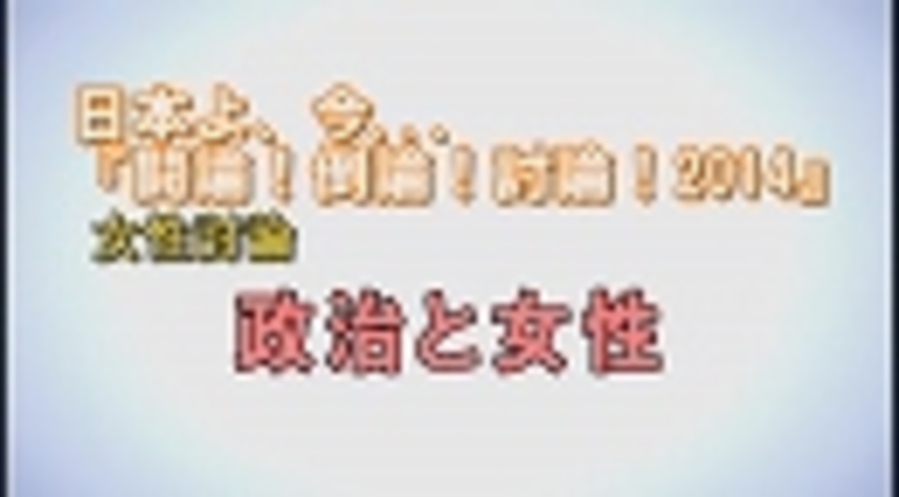 ◆女性討論「政治と女性」<br><br>パネリスト:<br> 有本香(ジャーナリスト)<br> 植松和子(静岡県函南町議会議員・「頑張れ日本!全国行動員会」事務局長)<br> 大高未貴(ジャーナリスト)<br> 木坂麻衣子(アートディレクター)<br> saya(シンガー)<br> 鈴木邦子(外交・安全保障研究家)<br> 高清水有子(皇室ジャーナリスト)<br>司会:水島総<br><br> ①<a href="https://www.nicovideo.jp/watch/1400234824" class="watch">watch/1400234824</a><br> ②<a href="https://www.nicovideo.jp/watch/1400234872" class="watch">watch/1400234872</a><br> ③<a href="https://www.nicovideo.jp/watch/1400242934" class="watch">watch/1400242934</a><br><br>※チャンネル桜では、自由且つ独立不羈の放送を守るため、『日本文化チャンネル桜二千人委員会』の会員を募集しております。以下のページでご案内申し上げておりますので、全国草莽の皆様のご理解、ご協力を、何卒宜しくお願い申し上げます。<br><a href="http://www.ch-sakura.jp/579.html" target="_blank" rel="noopener nofollow">http://www.ch-sakura.jp/579.html</a><br><br>◆チャンネル桜公式HP<br><a href="http://www.ch-sakura.jp" target="_blank" rel="noopener nofollow">http://www.ch-sakura.jp</a>