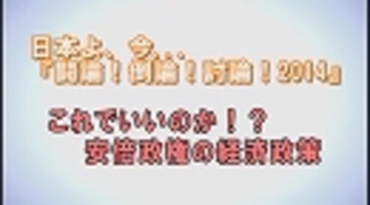 ◆これでいいのか!?安倍政権の経済政策<br><br>パネリスト:<br> 靑木泰樹(東海大学非常勤講師)<br> 上村シーラ千賀子(国際金融シンクタンク日本代表・早稲田大学講師・秋田大学講師)<br> 宍戸駿太郎(筑波大学名誉教授・国際大学名誉教授)<br> 田村秀男(産経新聞社特別記者・編集委員兼論説委員)<br> 藤井聡(京都大学大学院教授・内閣官房参与)<br> 三橋貴明(経世論研究所所長・中小企業診断士)<br> 渡邉哲也(経済評論家)<br>司会:水島総<br><br> ①<a href="https://www.nicovideo.jp/watch/1404497998" class="watch">watch/1404497998</a><br> ②<a href="https://www.nicovideo.jp/watch/1404498021" class="watch">watch/1404498021</a><br> ③<a href="https://www.nicovideo.jp/watch/1404498236" class="watch">watch/1404498236</a><br><br>※チャンネル桜では、自由且つ独立不羈の放送を守るため、『日本文化チャンネル桜二千人委員会』の会員を募集しております。以下のページでご案内申し上げておりますので、全国草莽の皆様のご理解、ご協力を、何卒宜しくお願い申し上げます。<br><a href="http://www.ch-sakura.jp/579.html" target="_blank" rel="noopener nofollow">http://www.ch-sakura.jp/579.html</a><br><br>◆チャンネル桜公式HP<br><a href="http://www.ch-sakura.jp/" target="_blank" rel="noopener nofollow">http://www.ch-sakura.jp/</a>