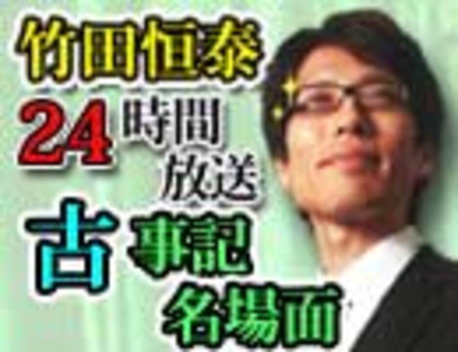 竹田恒泰CH特番<br><b>古事記名場面<br>~本物の24時間放送より~</b><br>※<b>この動画は、2014年9月22日に生放送した特番からの抜粋となります。</b><br><br>本物の24時間放送で語られた、<br>古事記名場面を全編ノーカット公開<br><br>-:-:-:-:-:-:-:-:-:-:-:-:-:-:-:-<br><br><b>・【無料】古事記名場面 ~本物の24時間放送より~(その1)</b><br><a href="http://www.nicovideo.jp/watch/1413267947" target="_blank" rel="noopener nofollow">http://www.nicovideo.jp/watch/1413267947</a><br><b>・古事記名場面 ~本物の24時間放送より~(その2)</b><br><a href="http://www.nicovideo.jp/watch/1413269138" target="_blank" rel="noopener nofollow">http://www.nicovideo.jp/watch/1413269138</a><br><b>・古事記名場面 ~本物の24時間放送より~(その3)</b><br><a href="http://www.nicovideo.jp/watch/1413269269" target="_blank" rel="noopener nofollow">http://www.nicovideo.jp/watch/1413269269</a><br><b>・古事記名場面 ~本物の24時間放送より~(その4)</b><br><a href="http://www.nicovideo.jp/watch/1413269370" target="_blank" rel="noopener nofollow">http://www.nicovideo.jp/watch/1413269370</a><br><b>・古事記名場面 ~本物の24時間放送より~(その5)</b><br><a href="http://www.nicovideo.jp/watch/1413269461" target="_blank" rel="noopener nofollow">http://www.nicovideo.jp/watch/1413269461</a><br>