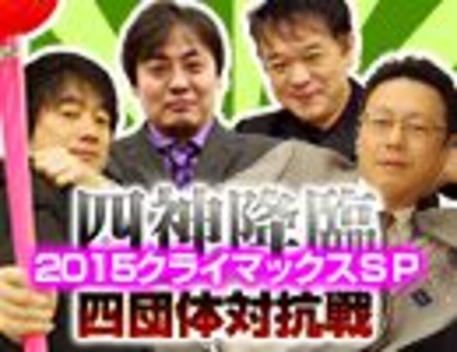 年の瀬に麻雀スリアロチャンネルよりさらなる愛を込めて――。<br><br>今年も「四神降臨クライマックスSP」の季節がやってまいりました。<br>昨年に引き続き、今年も4つの麻雀プロ団体によるガチンコ対局を開催いたします。<br><br>勝負は全5半荘。<br>半荘ごとのテーマに合わせ、各団体より1名ずつが出場。<br>総勢20名による、団体の威信をかけた真剣勝負をお見せいたします!<br><br>気になるテーマは何なのか? 出場選手は誰なのか?<br>詳しくはPVでご確認ください。<br><br>昨年末に大盛り上がりだったお祭り対局。<br>果たして今年はどんな番組になるのか。乞うご期待!<br><br>放送ページ:<a href="https://live.nicovideo.jp/watch/lv244859743" target="_blank" rel="noopener">lv244859743</a><br><br>☆麻雀スリアロチャンネル☆<br>フォローお待ちしております!→<a href="https://twitter.com/threearrowsch" target="_blank">スリアロtwitter</a><br>スリアロ公式HPもあるよ!→<a href="http://www.threearrows-ch.com/" target="_blank">スリアロHP</a><br>公式chページ→<a href="https://ch.nicovideo.jp/marchao" target="_blank" rel="noopener">ch.nicovideo.jp/marchao</a><br>
