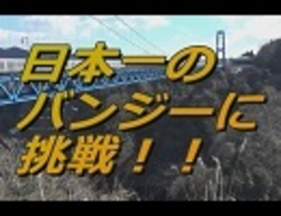 日本一の高さを誇る場所からバンジージャンプに挑戦してみました。<br>チャレンジ前は余裕だと思っていたのですが、いざ実際にやってみると…。<br><br>コメントが打てない人→<a href="https://www.nicovideo.jp/watch/1456940484" class="watch">watch/1456940484</a><br><br>------------------------------<br><font color="#ff0000">Part2以降の視聴は会員限定となります。</font> <br>Part2からのイケメティックダウンに注意してください。<br>アブチャンネルでは、チャンネル会員向けの動画や生放送、ブロマガなどを随時更新していきます。<br>入会はコチラ→<a href="http://ch.nicovideo.jp/abuuunch" target="_blank" rel="noopener nofollow">http://ch.nicovideo.jp/abuuunch</a><br>------------------------------<br><br>プレゼントの応募方法はこちら→<a href="https://ch.nicovideo.jp/article/ar1004736" target="_blank" rel="noopener">ar1004736</a><br><br>次回→<a href="https://www.nicovideo.jp/watch/1457514276" class="watch">watch/1457514276</a><br><br>twitter:<a href="http://twitter.com/abuuuntter" target="_blank" rel="noopener nofollow">http://twitter.com/abuuuntter</a><br>更新報告:<a href="https://www.nicovideo.jp/user/52865286" target="_blank" rel="noopener">user/52865286</a> 実況まとめ:<a href="https://www.nicovideo.jp/mylist/13083520" target="_blank" rel="noopener">mylist/13083520</a><br><br>