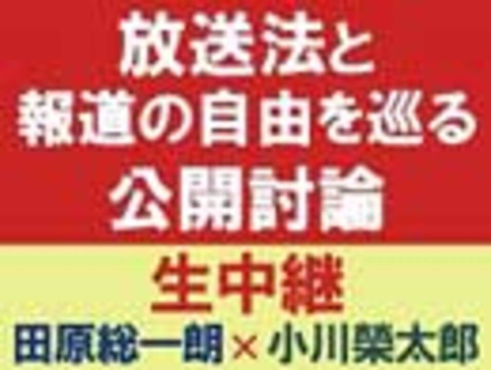 高市早苗総務大臣の放送法に基づく「電波停止発言」に対して、憲法・放送法の精神に反していると抗議したジャーナリストの1人、田原総一朗氏 と、政治について国民が正しく判断できるよう、公平公正な報道を放送局に対して求める「放送法遵守を求める視聴者の会」事務局長 小川榮太郎氏 による、公開討論 の模様を生中継でお届けいたします。<br><br>2016年3月頃より「放送法遵守を求める視聴者の会」側が、放送法や表現の自由、国民の知る権利、ジャーナリズムの役割、そして高市大臣発言の解釈に至るまで、多岐に渡る認識の相違を覚えるとして、抗議会見を行った7名のジャーナリストに公開討論を呼びかけていたところ、田原氏のみが承諾したことで実現。<br><br>2016年4月には、国連人権理事会の「表現の自由」特別報告者 デビッド・ケイ氏が「放送法/特定秘密保護法の改正」や「記者クラブの廃止」を提唱するなど、この問題を巡って示唆に富む議論が飛び交っている中、注目が集まります。<br><br>▼収録日:2016年5月10日(土)<br>※番組内容は収録時の情報に基いたものとなります※<br><br>------------------------------------------------<br><br>★ニコニコチャンネル/社会・言論/「ちょっと右よりですが・・・」<br><a href="http://ch.nicovideo.jp/channel/tyotto-migi">http://ch.nicovideo.jp/channel/tyotto-migi</a><br><br>------------------------------------------------<br>