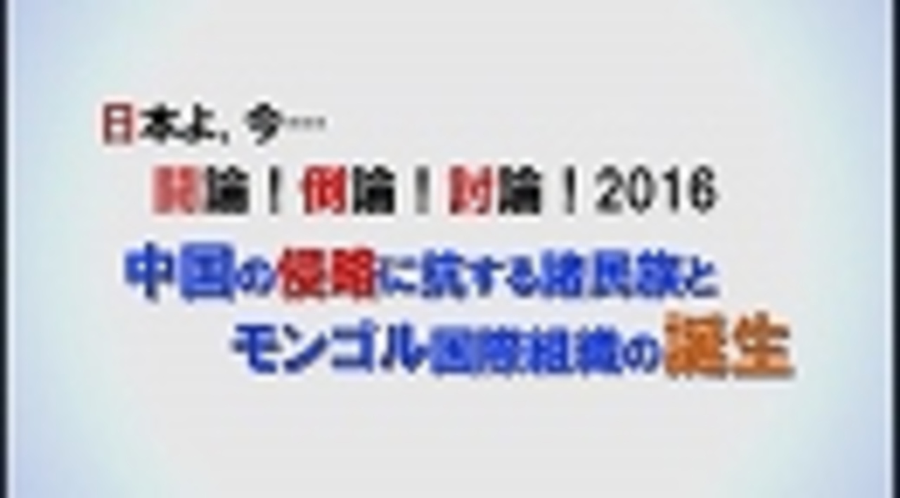 ◆中国の侵略に抗する諸民族とモンゴル国際組織の誕生<br><br>パネリスト:<br> イリハム・マハムティ(日本ウイグル協会代表)<br> オルホノド・ダイチン(モンゴル自由連盟党党首)<br> 謝恵芝(ジャーナリスト・キャスター)<br> ショブチョート・テムチルト(「内モンゴル人民党」主席)<br> ※通訳:ゴブルド・アリチヤ(南モンゴルクリルタイ副幹事長)<br> トゥール・ムハメット(世界ウイグル会議日本全権代表・日本ウイグル連盟会長)<br> 永山英樹(台湾研究フォーラム会長・頑張れ日本全国行動委員会埼玉県本部長)<br> ペマ・ギャルポ(桐蔭横浜大学大学院教授・チベット文化研究所名誉所長)<br> 三浦小太郎(評論家)<br>司会:水島総<br><br> ①<a href="https://www.nicovideo.jp/watch/1478849465" class="watch">watch/1478849465</a><br> ②<a href="https://www.nicovideo.jp/watch/1478849942" class="watch">watch/1478849942</a><br> ③<a href="https://www.nicovideo.jp/watch/1478849945" class="watch">watch/1478849945</a><br><br>※チャンネル桜では、自由且つ独立不羈の放送を守るため、『日本文化チャンネル桜二千人委員会』の会員を募集しております。以下のページでご案内申し上げておりますので、全国草莽の皆様のご理解、ご協力を、何卒宜しくお願い申し上げます。<br><a href="http://www.ch-sakura.jp/579.html" target="_blank" rel="noopener nofollow">http://www.ch-sakura.jp/579.html</a><br><br>◆チャンネル桜公式HP<br><a href="http://www.ch-sakura.jp/" target="_blank" rel="noopener nofollow">http://www.ch-sakura.jp/</a>