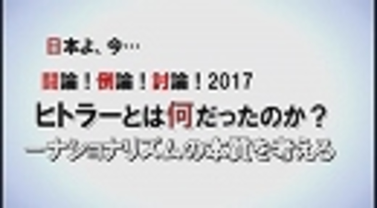 ◆ヒトラーとは何だったのか?-ナショナリズムの本質を考える<br><br>パネリスト:<br> 阿羅健一(近現代史研究家)<br> 小堀桂一郎(東京大学名誉教授)<br> 佐瀬昌盛(防衛大学校名誉教授)<br> 福井義高(青山学院大学教授)<br>司会:水島総<br><br> ①<a href="https://www.nicovideo.jp/watch/1486168861" class="watch">watch/1486168861</a><br> ②<a href="https://www.nicovideo.jp/watch/1486168858" class="watch">watch/1486168858</a><br> ③<a href="https://www.nicovideo.jp/watch/1486168915" class="watch">watch/1486168915</a><br><br>※チャンネル桜では、自由且つ独立不羈の放送を守るため、『日本文化チャンネル桜二千人委員会』の会員を募集しております。以下のページでご案内申し上げておりますので、全国草莽の皆様のご理解、ご協力を、何卒宜しくお願い申し上げます。<br><a href="http://www.ch-sakura.jp/579.html" target="_blank" rel="noopener nofollow">http://www.ch-sakura.jp/579.html</a><br><br>◆チャンネル桜公式HP<br><a href="http://www.ch-sakura.jp/" target="_blank" rel="noopener nofollow">http://www.ch-sakura.jp/</a>