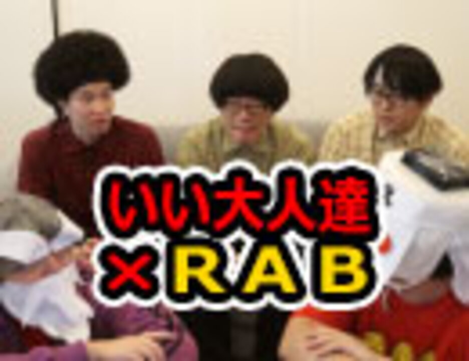 いい大人達が、RAB(リアルアキバボーイズ)の皆様と本気でコラボ企画を行ってみました。<br>第一弾として、オタク達の邂逅をご覧ください!<br><br>RABチャンネルでもこちらの動画を公開中!さらに第二弾として、ゲーム実況コラボも近日公開予定!<br>→<a href="https://www.youtube.com/channel/UCMmO8fiv0J34qc0qIO6t31A" target="_blank">https://www.youtube.com/channel/UCMmO8fiv0J34qc0qIO6t31A</a><br><br>いい大人達チャンネルでは、10月にダンスレッスンの様子を、会員様限定で公開させていただきます!<br><br><br>登場人物:RABの皆さん(涼宮あつきさん、マロンさん、ムラトミさん)<br>いつも愉快なタイチョー、歳はみんなと同じだけどオッサン<br><br>(ご注意!)品の無い発言が多い傾向にあります。ご了承ください。<br><br><br>次→会員様限定で10月公開予定! これまでの実況→<a href="https://www.nicovideo.jp/mylist/17828031" target="_blank" rel="noopener">mylist/17828031</a> ラジオ→<a href="https://www.nicovideo.jp/mylist/28752088" target="_blank" rel="noopener">mylist/28752088</a>