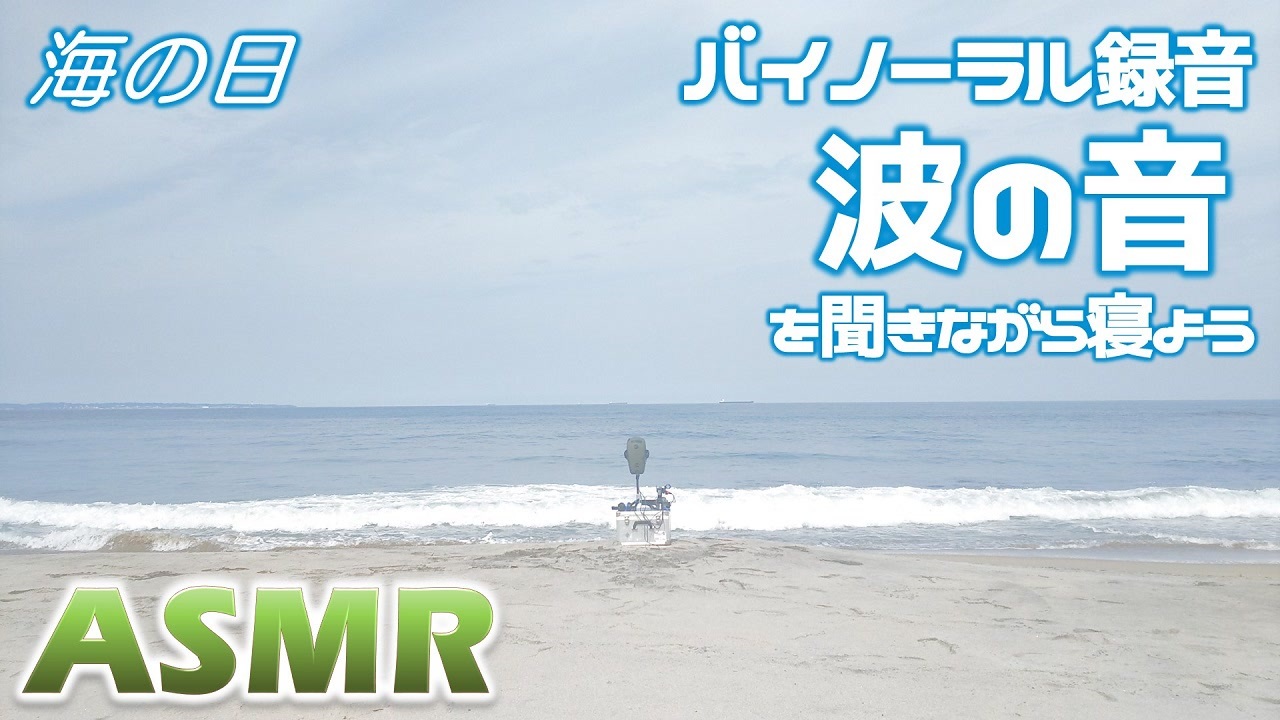 平成最後の「海の日」<br>茨城・長浜海岸の波の音を聞きながら寝よう<br>⇒ <u><a href="http://live.nicovideo.jp/watch/lv314335715" target="_blank">http://live.nicovideo.jp/watch/lv314335715</a></u><br><br>※ニコ動への再投稿・MAD素材化など、<br> 二次利用を歓迎(商用利用は不可)<br><br>【ASMRとは】<br><u><a href="http://dic.nicovideo.jp/a/asmr" target="_blank">ニコニコ大百科の記事はこちら</a></u><br>Autonomous Sensory Meridian Response の略。<br>人が聴覚や視覚への刺激によって感じる、心地良い、頭がゾワゾワするといった反応・感覚。<br>ASMRを一言で説明できる日本語訳が確立されていない(直訳すると自律感覚絶頂反応)。<br>簡単に言うと「脳がとろけるように気持ち良くなる現象」を指す言葉。<br>人によって快感を得られる音は異なる。<br>