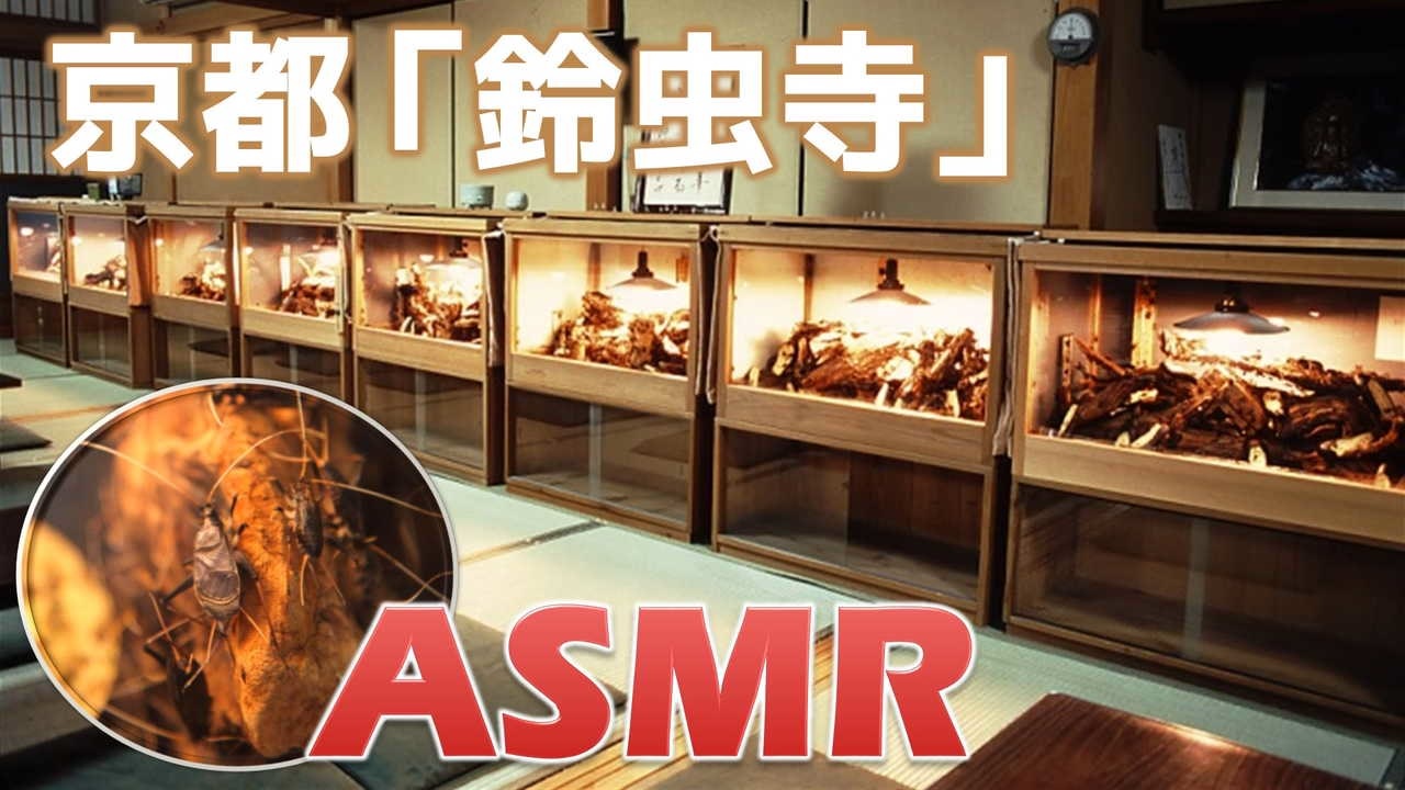2018年9月14日(金)放送<br>【秋の京都】鈴虫寺の鈴虫の鳴き声を聞きながら寝よう【ASMR】<br>⇒ <u><a href="http://live.nicovideo.jp/watch/lv315582487" target="_blank">http://live.nicovideo.jp/watch/lv315582487</a></u><br><br>秋だけでなく、四季を通じて鈴虫の音色を聞くことのできる<br>「<u><a href="http://www.suzutera.or.jp/" target="_blank">妙徳山 華厳寺 鈴虫寺</a></u>」。<br>江戸時代中期の享保8年(1723年)に華厳宗の再興に力を注いだ学僧<br>として知られる鳳潭上人(ほうたんしょうにん)によって開創された<br>京都府京都市西京区にある臨済宗の寺院である。<br><br>飼育されている鈴虫の数は、住職曰く 約6000匹。<br>大広間での参拝者への茶菓子のもてなし、<br>約30分程の鈴虫説法が老若男女問わず人気である。<br><br>山門脇には、右手に錫杖、左手に宝珠を持ち、<br>日本で唯一わらじを履いている地蔵「幸福地蔵菩薩」が立っている。<br>「一つだけ願いを叶えて来てくださるお地蔵さん」と言われており、<br>お願い事をする際、最初に自身の住所を言うのが良いとされている。<br><br>【ASMRとは】<br><u><a href="http://dic.nicovideo.jp/a/asmr" target="_blank">ニコニコ大百科の記事はこちら</a></u><br>Autonomous Sensory Meridian Response の略。<br>人が聴覚や視覚への刺激によって感じる、心地良い、頭がゾワゾワするといった反応・感覚。<br>ASMRを一言で説明できる日本語訳が確立されていない(直訳すると自律感覚絶頂反応)。<br>簡単に言うと「脳がとろけるように気持ち良くなる現象」を指す言葉。<br>人によって快感を得られる音は異なる。<br>