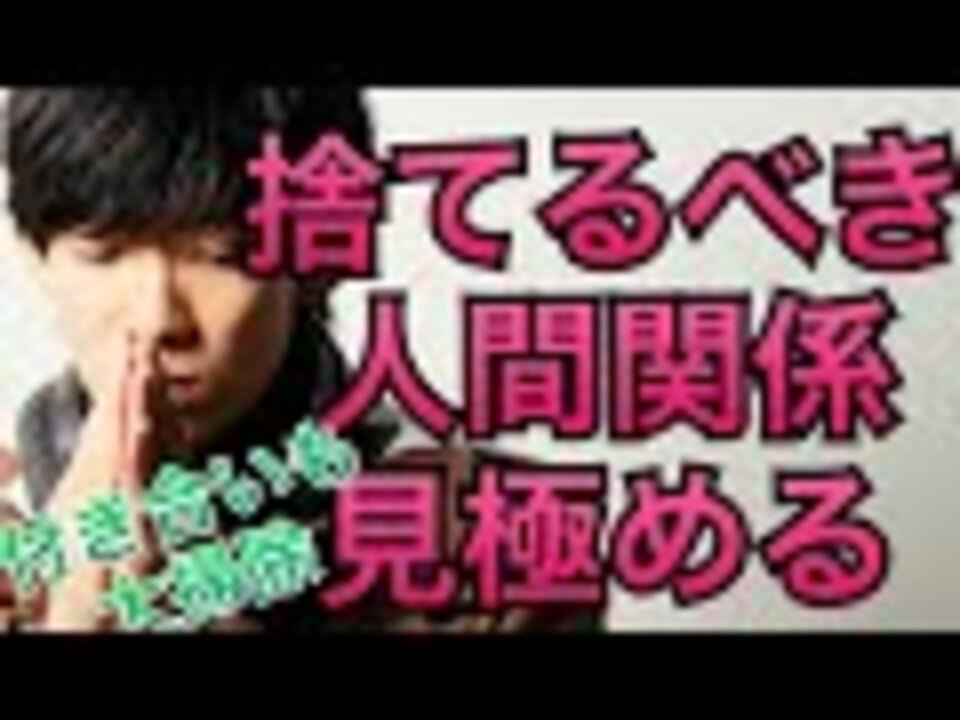 不要な人間関係の掃除が終わったら、人生を変える友人の作り方も勉強してみてはいかがでしょうか「人生を変える友人の見つけ方」<br>⇒<a href="https://www.nicovideo.jp/watch/1525281504" target="_blank" rel="noopener nofollow">https://www.nicovideo.jp/watch/1525281504</a><br><br>新しいより良い人間関係が作れる自信が持てれば、人間関係の整理は怖くなくなります。「コミュ障でも5分で新しい人間関係や人脈を作る方法」はこちらから<br>⇒<a href="https://www.nicovideo.jp/watch/1525704925" target="_blank" rel="noopener nofollow">https://www.nicovideo.jp/watch/1525704925</a><br><br>仕事や人生にプラスになる投資として人間関係を極めたいなら少ない人数でも成功を引き寄せる「人脈と投資の技術」<br>⇒<a href="https://www.nicovideo.jp/watch/1509613524" target="_blank" rel="noopener nofollow">https://www.nicovideo.jp/watch/1509613524</a><br><br>メンタリストDaiGoと弟制作の無料メンタルアプリ<br>⇒<a href="https://ch.nicovideo.jp/mentalist/blomaga/ar1712447" target="_blank" rel="noopener nofollow">https://ch.nicovideo.jp/mentalist/blomaga/ar1712447</a><br><br>リサーチ協力パレオな男⇒<a href="http://sp.ch.nicovideo.jp/paleo" target="_blank" rel="noopener nofollow">http://sp.ch.nicovideo.jp/paleo</a><br>メンタリストの料理番⇒<a href="http://sp.ch.nicovideo.jp/mental-cooking" target="_blank" rel="noopener nofollow">http://sp.ch.nicovideo.jp/mental-cooking</a><br>着心地よすぎていつも着てるバランススタイル⇒<a href="https://balance-style.jp/" target="_blank" rel="noopener nofollow">https://balance-style.jp/</a><br><br>ニコ生の今後の放送は⇒<a href="http://ch.nicovideo.jp/mentalist" target="_blank" rel="noopener nofollow">http://ch.nicovideo.jp/mentalist</a><br>