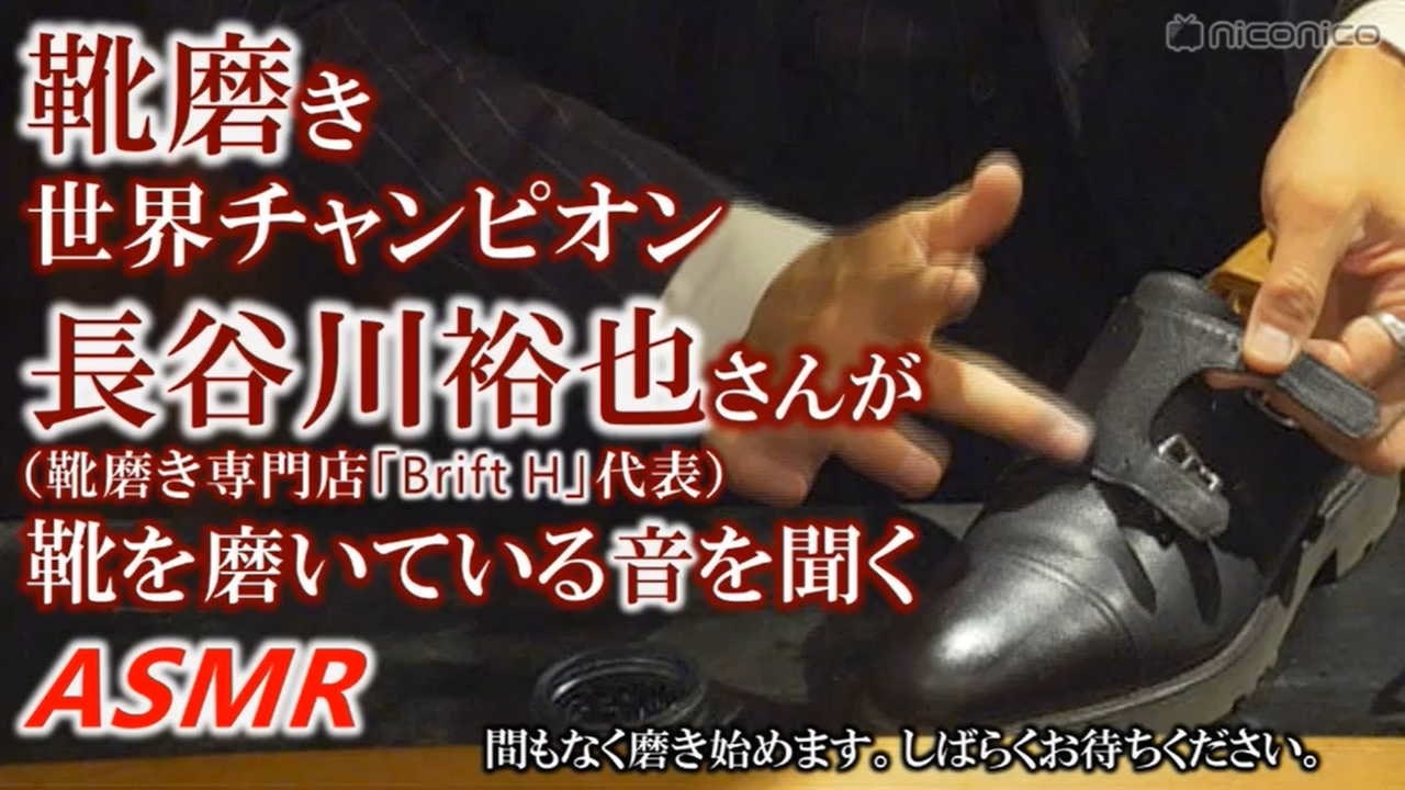 2018年10月13日(土)放送<br>靴磨き世界チャンピオン・長谷川裕也さん(靴磨き専門店「Brift H」代表)が靴を磨いている音を聞く【ASMR】<br>⇒ <a href="https://live.nicovideo.jp/watch/lv316198153" target="_blank">https://live.nicovideo.jp/watch/lv316198153</a><br><br>2019年2月15日(金)放送<br>【靴磨きASMR】世界一の靴磨き職人・長谷川裕也さんが靴を磨いている音を聞く24時間<br>⇒ <a href="https://live.nicovideo.jp/watch/lv318495543" target="_blank">https://live.nicovideo.jp/watch/lv318495543</a><br><br><br>【撮影協力】<br>●<strong>長谷川裕也</strong>さん(靴磨き職人・靴磨き専門店「Brift H」代表)<br>2004年20歳の時に丸の内の路上で靴磨きを始め、<br>1年後に品川駅前の路上へ移るころには、行列の出来る靴磨き屋に。<br>2006年には日本初の靴磨き専門サイト「靴磨き.com」を立ち上げ、<br>靴磨きのイメージを変えたいというパンク精神で<br>2008年南青山にカウンタースタイルの靴磨き専門店「Brift H」を開店。<br>近年は海外でもイベントを行うなど、新たな靴磨きのスタイルを模索しつづけている。<br>2017年、ロンドンで行われた「ワールドチャンピオンシップオブシューシャイニング」優勝。<br><br><a href="http://brift-h.com/" target="_blank">靴磨き専門店「</a><strong><a href="http://brift-h.com/" target="_blank">Brift H</a></strong><a href="http://brift-h.com/" target="_blank">」公式HP</a>(クリックで表示)<br><br><br>※ニコ動への再投稿・MAD素材化など、二次利用を歓迎します(商用利用は不可)<br><br>【ASMRとは】<br>ニコニコ大百科の記事はこちら<br>Autonomous Sensory Meridian Response の略。<br>人が聴覚や視覚への刺激によって感じる、心地良い、頭がゾワゾワするといった反応・感覚。<br>ASMRを一言で説明できる日本語訳が確立されていない(直訳すると自律感覚絶頂反応)。<br>簡単に言うと「脳がとろけるように気持ち良くなる現象」を指す言葉。<br>人によって快感を得られる音は異なる。<br>