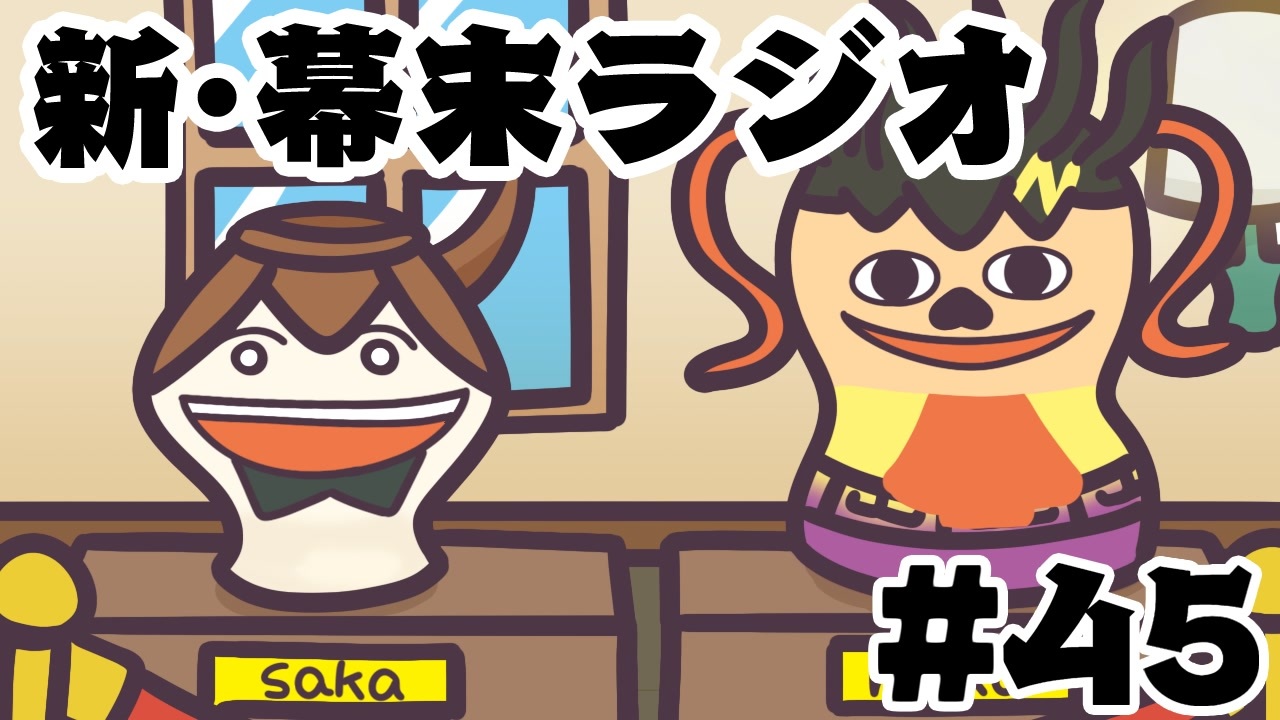新・幕末ラジオ 2021年7月3日(土)放送分<br><br>1,【令和最新版】坂ちゃんリサーチ:<a href="#" class="seekTime" data-seekTime="00:01" onclick="seekNicoPlayer('#00:01'); return false;">#00:01</a><br>2,放送次第:<a href="#" class="seekTime" data-seekTime="17:25" onclick="seekNicoPlayer('#17:25'); return false;">#17:25</a><br>3,中岡コーナー「俺のネトゲキャラ」:<a href="#" class="seekTime" data-seekTime="26:28" onclick="seekNicoPlayer('#26:28'); return false;">#26:28</a><br>4,中岡作漫画「君の瞳にドッキドキ2話」:<a href="#" class="seekTime" data-seekTime="31:22" onclick="seekNicoPlayer('#31:22'); return false;">#31:22</a><br>5,steamゲーム実況「陶芸マスター」:<a href="#" class="seekTime" data-seekTime="38:08" onclick="seekNicoPlayer('#38:08'); return false;">#38:08</a><br><br><a href="https://www.nicovideo.jp/watch/so39308911" class="watch">so39308911</a>←第44回 第46回→<a href="https://www.nicovideo.jp/watch/so39364305" class="watch">so39364305</a><br>(会員限定)新幕末ラジオマイリスト:<a href="https://www.nicovideo.jp/mylist/78814077" target="_blank" rel="noopener">mylist/78814077</a><br>(会員限定)旧幕末ラジオマイリスト:<a href="https://www.nicovideo.jp/mylist/55616469" target="_blank" rel="noopener">mylist/55616469</a><br><br>更新情報(Twitter) → <a href="https://twitter.com/kirizaki_ei" target="_blank" rel="noopener nofollow">https://twitter.com/kirizaki_ei</a><br>ゲーム実況まとめ : <a href="https://www.nicovideo.jp/mylist/8299531" target="_blank" rel="noopener">mylist/8299531</a><br>単発動画まとめ : <a href="https://www.nicovideo.jp/mylist/10539272" target="_blank" rel="noopener">mylist/10539272</a><br>生放送まとめ : <a href="https://www.nicovideo.jp/mylist/53482635" target="_blank" rel="noopener">mylist/53482635</a><br>幕末志士チャンネル : <a href="https://ch.nicovideo.jp/bakumatsu" target="_blank" rel="noopener">ch.nicovideo.jp/bakumatsu</a><br>