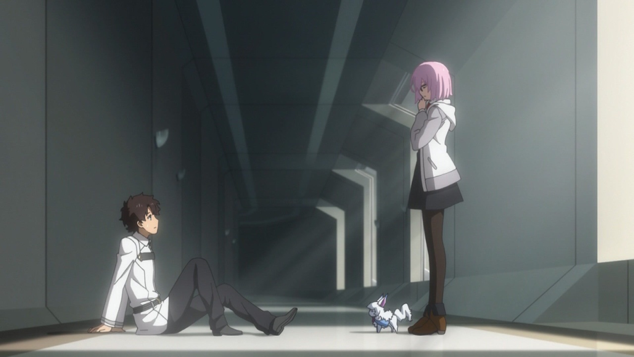人理継続保障機関・カルデアにマスター適正を見込まれ招聘された藤丸立香。彼は初めて訪れたカルデアの施設内で、物静かな少女マシュ・キリエライトと出会う。魔術の素養がなく、最初の任務から外されてしまう藤丸だったが、その任務中に他のマスター候補者やマシュをはじめとしたスタッフの多くが大事故に巻き込まれてしまう。気を失った藤丸が目を覚ました場所――そこは、かつて聖杯戦争が行われた地、2004年の冬木だった。更に、彼の眼前には身の丈ほどもある盾を構えた少女―サーヴァントとなったマシュ・キリエライト―が現れる。“グランドオーダー”へ至る最初の指令――“ファーストオーダー”がここに発令される。<br><br>藤丸立香:島﨑信長/マシュ・キリエライト:高橋李依/フォウ:川澄綾子/オルガマリー・アニムスフィア:米澤円/ロマニ・アーキマン:鈴村健一/レフ・ライノ―ル:杉田智和<br><br>原作:TYPE-MOON/ストーリー原案:奈須きのこ/キャラクター原案:武内崇/監督:難波日登志/助監督:塚田拓郎/脚本:関根アユミ/キャラクターデザイン:後藤圭佑/デザインワークス:赤石沢貴士/色彩設計:竹澤聡/美術デザイン:佐藤豪志/美術監督:海老澤卓也/撮影監督:松井伸哉/編集:定松剛/音楽:川﨑龍/主題歌:「色彩」坂本真綾(フライングドッグ)/音響監督:高寺たけし/音響制作:HALF H・P STUDIO/制作:Lay-duce<br><br>©TYPE-MOON / FGO ANIME PROJECT<br><br>次話→<a href="https://www.nicovideo.jp/watch/so39976618" class="watch">so39976618</a>