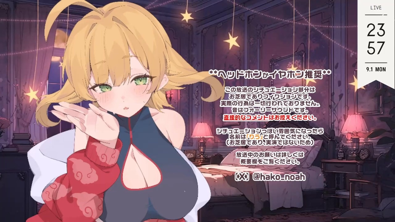 <span style="color: orange;">♥</span><span style="color: #ffe599;">♥</span><span style="color: orange;"> </span><strong>チャンネル会員登録 </strong><span style="color: #ffe599;">♥</span><span style="color: orange;">♥</span> <a href="https://ch.nicovideo.jp/nekonotte/join?hash=1683870092" target="_blank" rel="noopener nofollow">https://ch.nicovideo.jp/nekonotte/join?hash=1683870092</a><br><span style="color: orange;">♥ </span>毎週月曜23:00~<br><span style="color: orange;">♥ </span>リクエスト <a href="https://ch.nicovideo.jp/nekonotte/letter" target="_blank" rel="noopener nofollow">https://ch.nicovideo.jp/nekonotte/letter</a> (必ずお応えできるとは限りません)<br> <br><span style="color: orange;">♥</span><span style="color: #ffe599;">♥</span><strong> 箱河ノア </strong><span style="color: #ffe599;">♥</span><span style="color: orange;">♥</span><br><a href="https://twitter.com/hako_noah" target="_blank" rel="noopener nofollow">https://twitter.com/hako_noah</a><br><a href="https://fantia.jp/nekonotte" target="_blank" rel="noopener nofollow">https://fantia.jp/nekonotte</a><br><a href="https://youtube.com/@nekonotte" target="_blank" rel="noopener nofollow">https://youtube.com/@nekonotte</a><br><a href="http://no.nekonotte.net/" target="_blank" rel="noopener nofollow">http://no.nekonotte.net/</a><br><br>この放送はすべてお芝居でありフィクションです。実際の行為は行われておりません。<br>効果音はフォーリーサウンドです。<br><br>ノイズや猫が鳴いている部分をカットしたことにより会話が繋がらなくなっている部分があります。<br>ご了承ください🙇<br><br><strong>無断転載禁止<br>Reproduction prohibited without permission.<br>未經許可,禁止轉載.<br>若您轉載,則視為您同意支付使用費用.</strong>