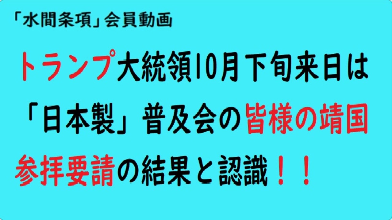 ■【ホワイトハウスにトランプ大統領靖国参拝を要請できる宛先】<br><br>1) オンラインフォーム(最速の方法) • ホワイトハウスの公式連絡先ページをご覧ください:www.whitehouse.gov/contact<br>◆ フォームに氏名、メールアドレス、電話番号、住所、件名(例:「一般的なご意見」)、およびメッセージ(最大約300語)をご記入ください。 • ご意見・ご懸念・ご挨拶/ご招待のご依頼を提出する最も迅速な方法です。<br><br>2) 手紙• 送付先:The White House<br>Office of the President<br>1600 Pennsylvania Avenue, N.W.<br>Washington, DC 20500<br>◆ 差出人住所を明記してください。郵便物は保安検査で遅延する場合があります。貴重品、生鮮品、現金は送付せず、代わりに慈善団体へ寄付してください。<br>3) 電話• ホワイトハウス意見受付電話:(202) 456-1111<br>◆ 短いメッセージ機能をご利用ください。これは簡単なコメント用であり、直接の会話用ではありません。<br><br>4) ソーシャルメディア(公開メッセージ)• X(旧Twitter)に投稿:@WhiteHouse、@POTUS、または@realDonaldTrump。#WhiteHouse や #POTUS などのハッシュタグを使用してください。<br>◆ Facebook上で:ホワイトハウス、大統領(POTUS)、またはドナルド・J・トランプの公式ページにメッセージまたはコメントを投稿してください。<br>◆◇◆◇◆◇◆◇◆◇◆◇◆◇◆◇◆◇◆◇<br><br>■トランプ大統領への靖国神社参拝要請に加筆できる方は下記文案を参考にしてください。<br><br>【1941年8月の大西洋会談録の公開要請】<br>●1941年8月ニューファンドランド島沖でルーズベルト大統領とチャーチル首相が行った大西洋々上会談録は現在も民主党に都合の悪い内容なのかも知れませんが非公開になっております。<br><br>実際、「大西洋憲章」が、発表に至るまでの会談録は非公開になっておりますが、戦争の時代だった20世紀の最重要会談だったルーズベルト大統領とチャーチル首相の会談録が公開されることによって、プーチン大統領が、現在、行っている20世紀型の侵略戦争を無くすためにも貴重な歴史的資料になりますので、是非、人類の平和のために公開していただければと願っております。<br>◆◇◆◇◆◇◆◇◆◇◆◇◆◇◆◇◆◇◆◇<br>以上宜しくお願い致します。水間拝